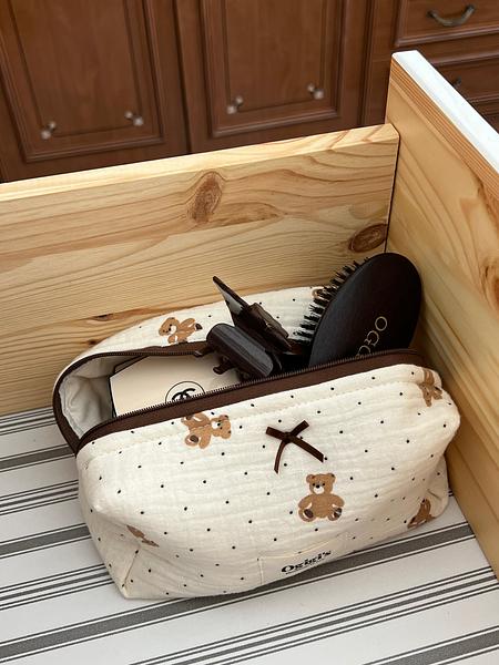 ogigi's handmade · Beauty case teddy core - Small size / Fiocco e zip marrone
